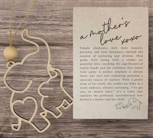 Personalized Mothers Day Elephant Ornament: Laser Cut Birch Wood Gift