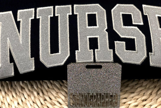 Puff Vinyl Embroidered Nurse Sweatshirt and Badge Buddy: Cotton Blend RN Crewneck