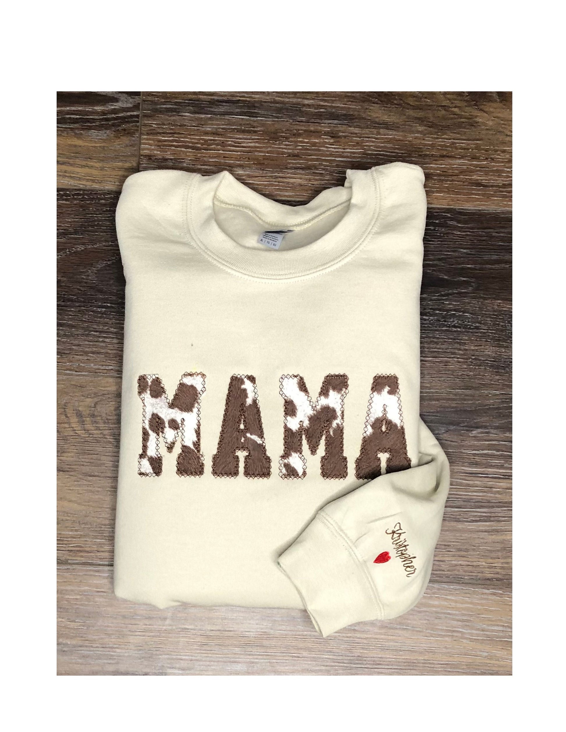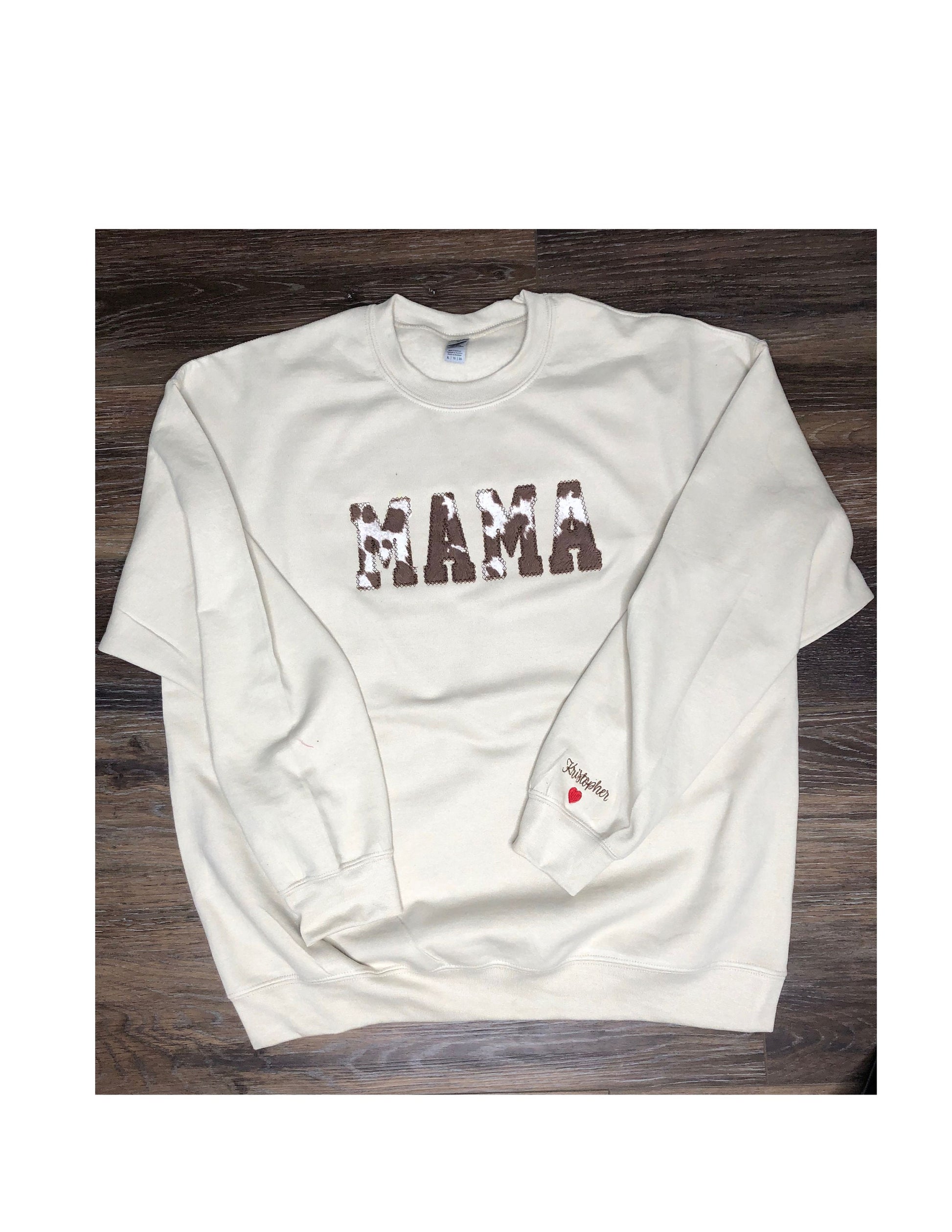 Embroidered MAMA Sweatshirt for Mom, Personalized Sleeve Embroidered Sweatshirt, MAMA Crewneck, Custom Gift for Mom, New Mom Gift