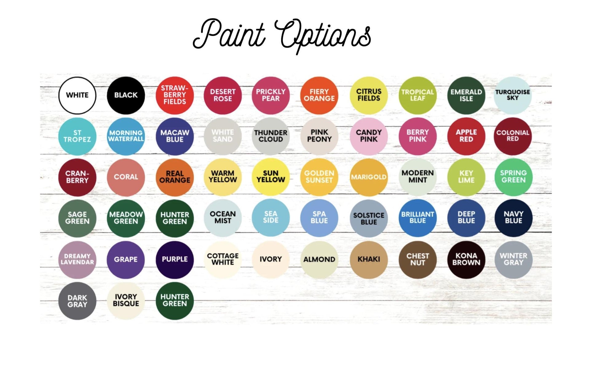 The sizes that are available are as follows: ALL size are approximate due to the length of some names.