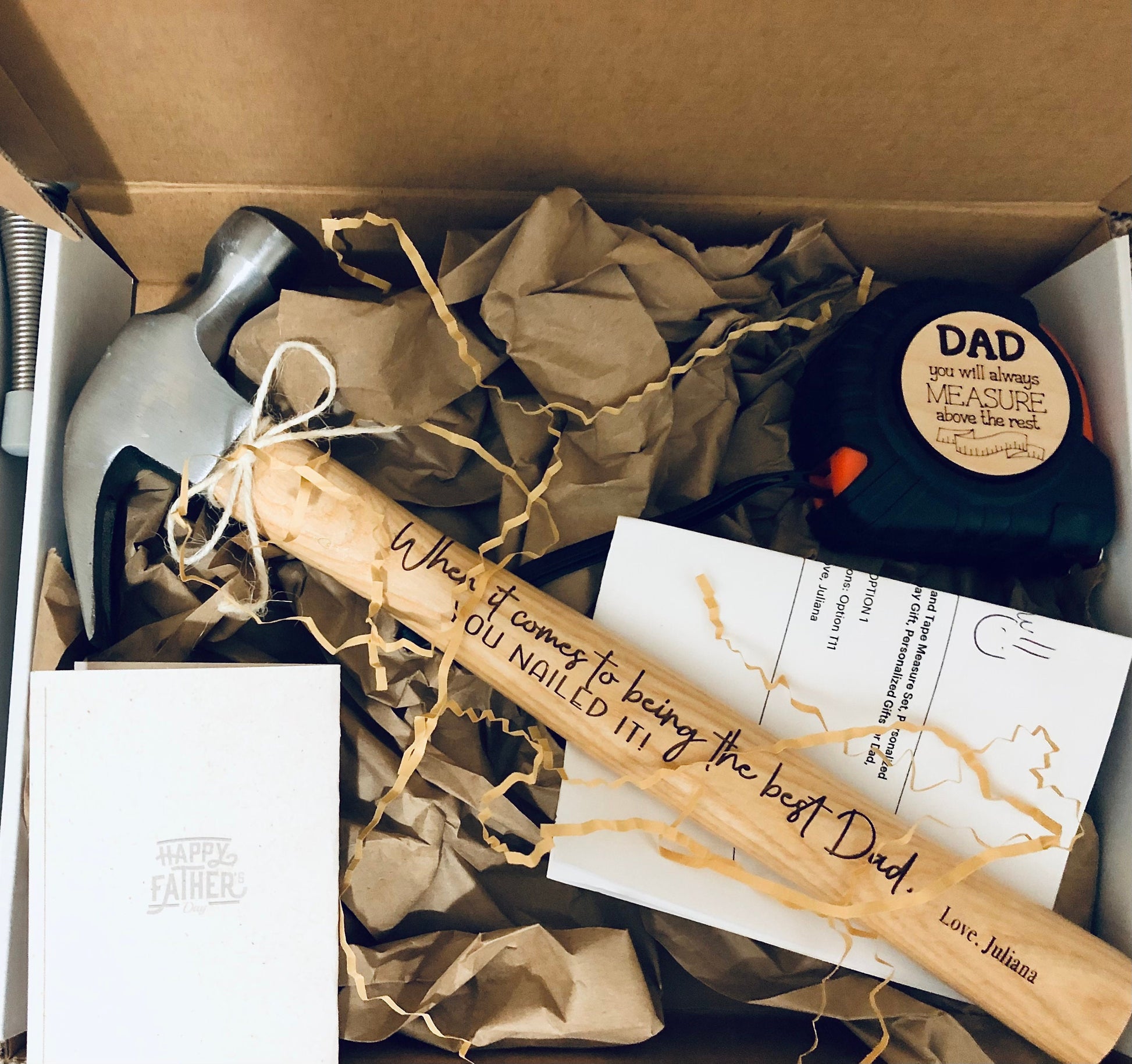 This personalized hammer and tape measure is the best gift for any occasion. With Fathers Day approaching this is the perfect gift for those hardworking fathers, grandfathers, and husbands. You can choose from the dropdown list of phrases that you would like on the hammer.