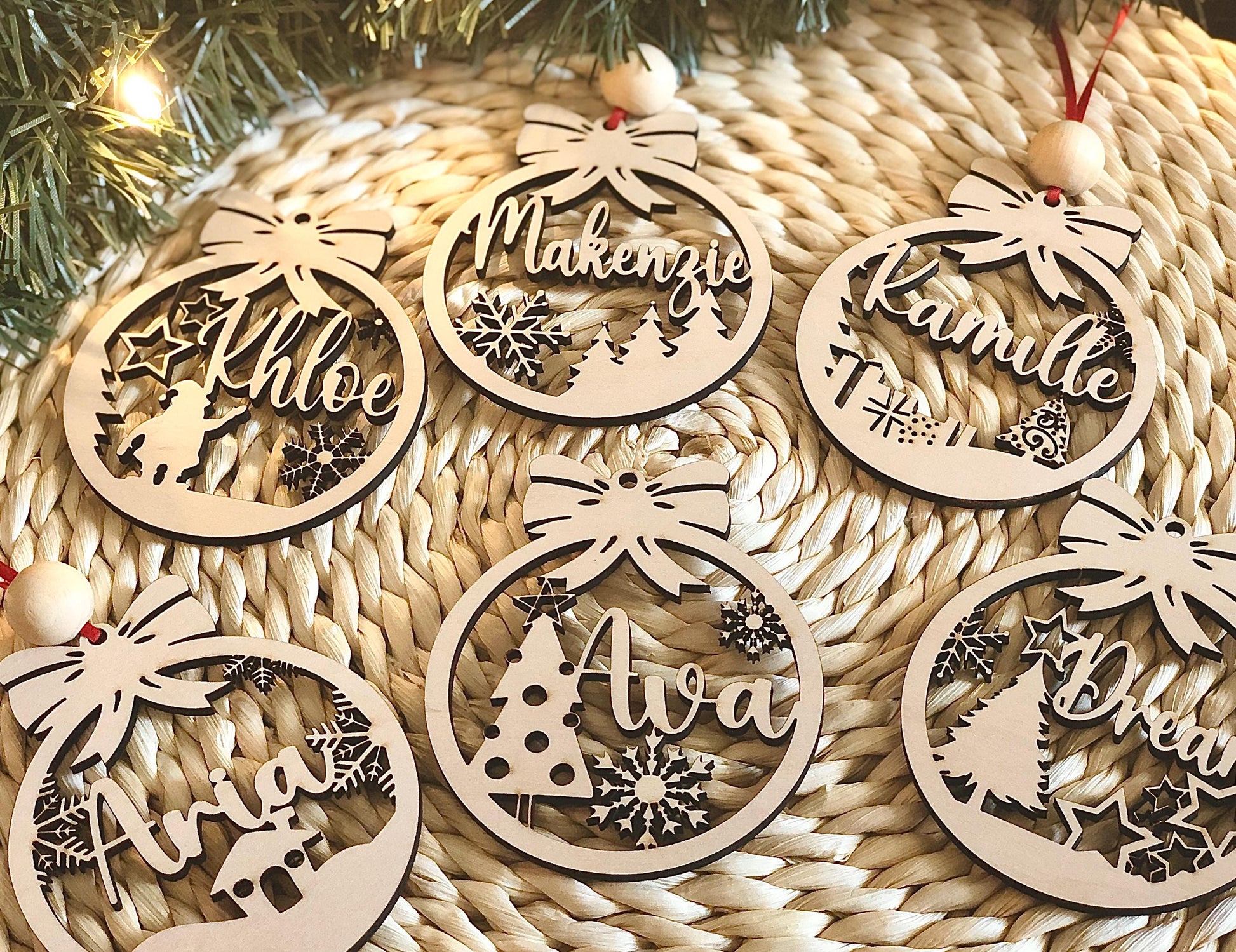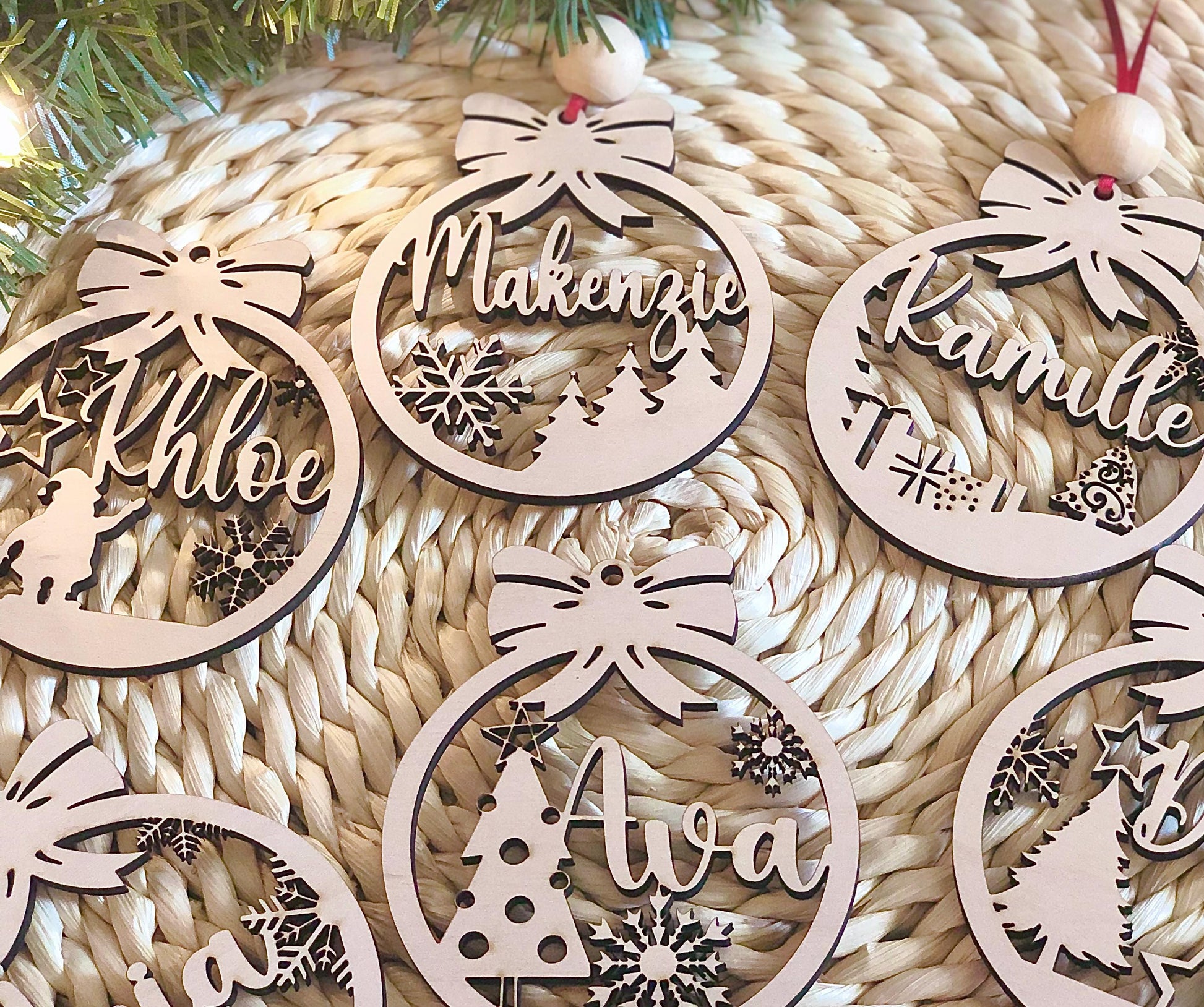 Personalized Wooden Christmas Ornament: Laser Cut Name, Custom Xmas Decor